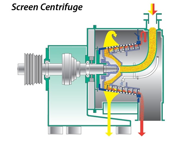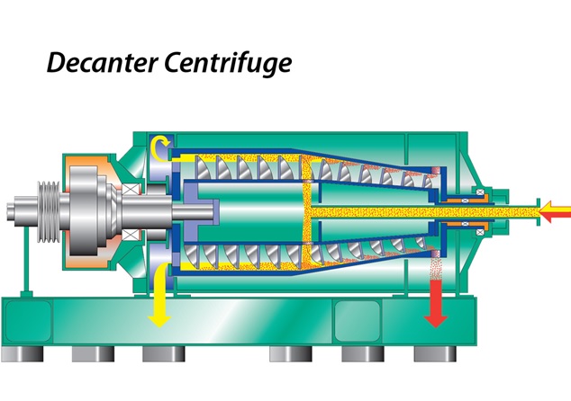 Sumitomo Cyclo Centrifuge Drives provide the differential speed between the bowl and the conveyor and the torque for the conveyor. The perfectly balanced housing is connected with the bowl and turns at the bowl speed. The output shaft of the centrifuge reducer is connected to the conveyor and transmits the torque which is needed for the solids transport. The input shaft can be locked by a torque arm or driven by a back-drive motor to provide the necessary relative speed.